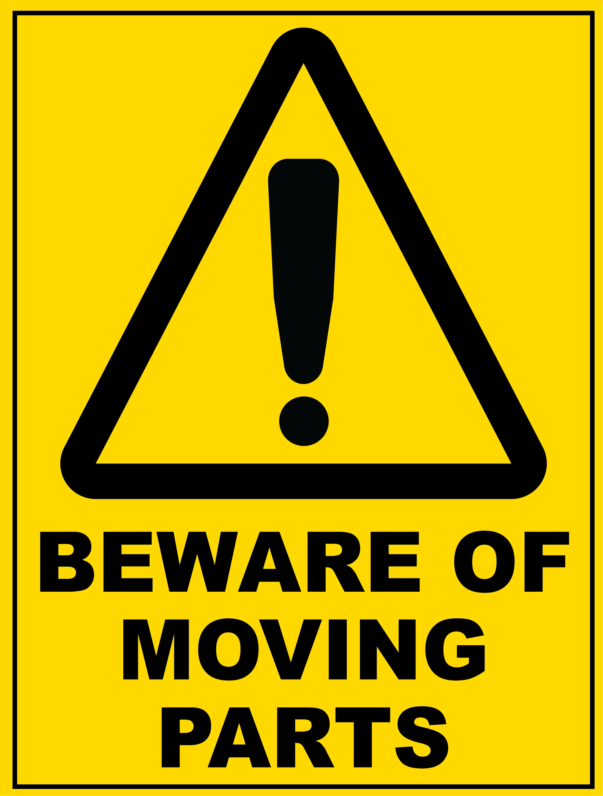 Warn people of potential hazards from machinery with moving components to prevent accidental injury or entanglement.